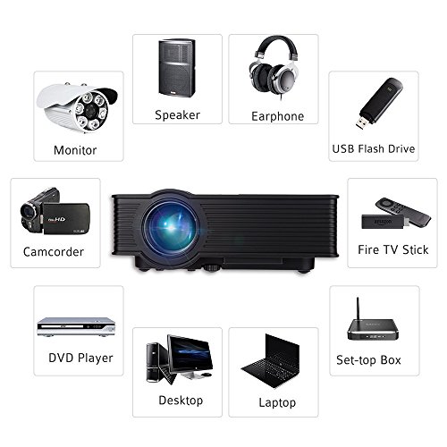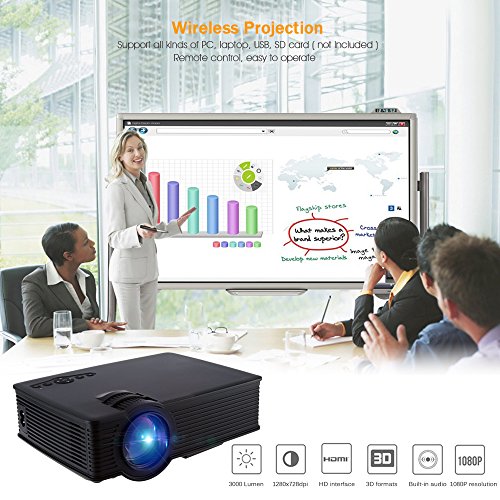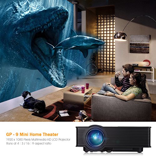 Joyhero Projector 2000 Lumens LCD HD 1920 x 1080p Home Theater Projector For Laptop Game SD iPad iPhone Android Smartphone Black