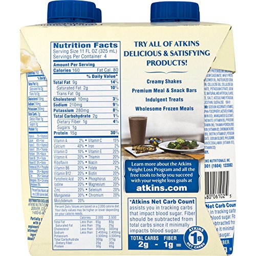 (Atkins)/Sports Nutrition/Protein/DIRECT FROM USA/Atkins French Vanilla Shake, 11Fl oz 4 Count