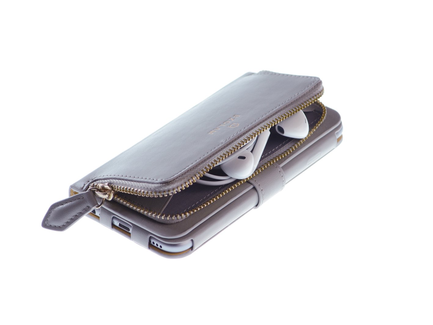 Because it is a slide-in specification, there is no worry of hurting the main body.Pocket with a large capacity zipper is also ideal for storage of earphones.Inside with two pockets.