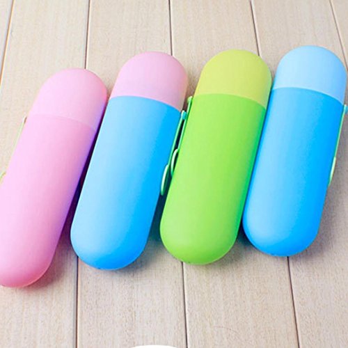 AUCH 2Pack Portable Anti-bacterial Space-Saving Toothbrush & Toothpaste Holder/Storage Box/Organizer Case/Protector w/ Cap & Strip for Travel Camping Bath Cap(Clear Rose& Clear Green)