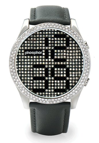 Studio : Phosphor ReleaseDate : 2012-01-20 Publisher : Phosphor Binding : Watch Product Description PHOSPHOR APPEAR WATCH MD005L UNISEX BLACK CRYSTAL DIGITAL DIAL BLACK LEATHER BAND, Model: MD005L, Display: 12 hour only, Water Resistant up to 50 meters/165 feet, Auto Shock Detection feature, Functions: Time, Seconds, and Off, Utilizes Micro-Magnetic Mechanical Digital (M3D) technology, Adorned with SwarovskiTM crystalsCase length: 44 mm, Case width: 44 mm, Case thickness: 16 mm, Band width: 21 mm, Band length: 24.5 cm? 0