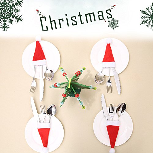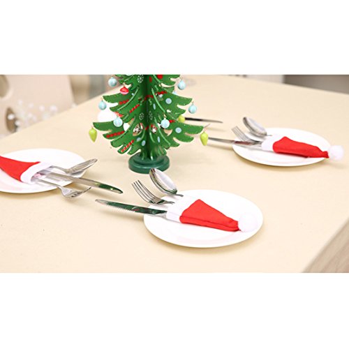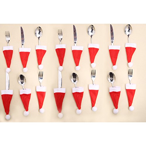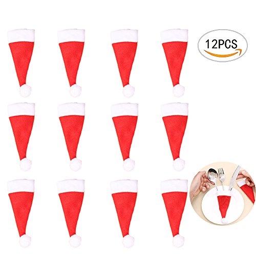 Nextnol 12PCS Red Christmas hat Silverware Holders For Party