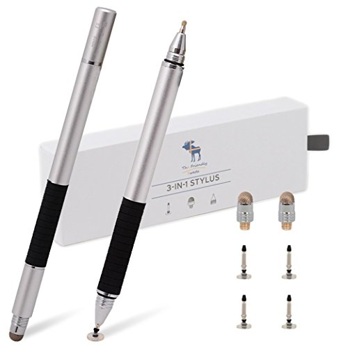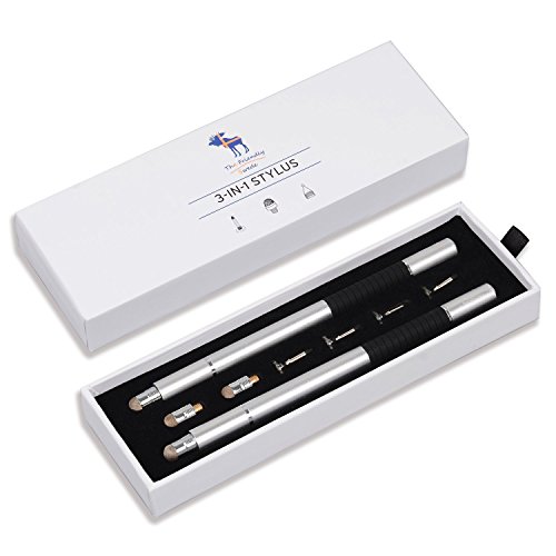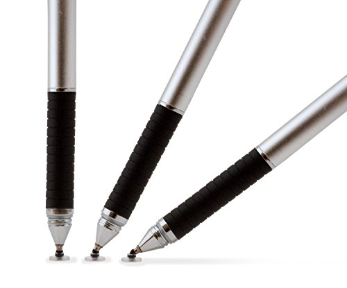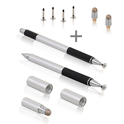 The Friendly Swede 3-in-1 Hybrid Pen, Capacitive Fiber and Fine Point Disc Stylus, with Ballpoint end and Replaceable tips in Gift Box (2 Pack) (Silver)