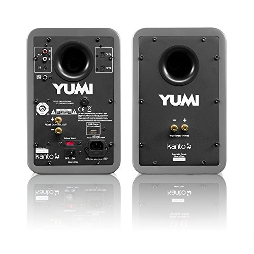 Kanto YUMI Premium Powered Bookshelf Speakers with Wireless Bluetooth 4.0 aptX Technology – Matte Grey