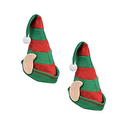 2 Pack: Christmas House Striped Elf Hats with Ears, 19 inch