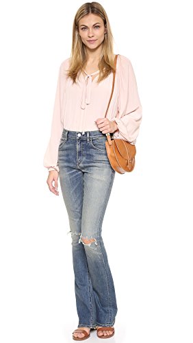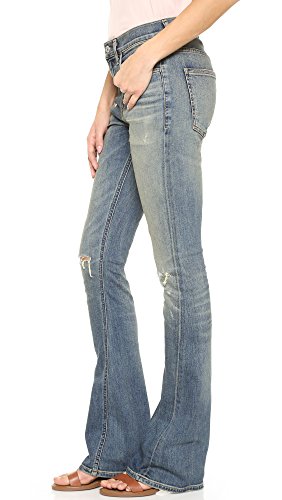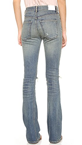 Yellowed fading and shredded holes give these flared Citizens of Humanity jeans a worn-in look. 4-pocket styling. Button closure and zip fly.
