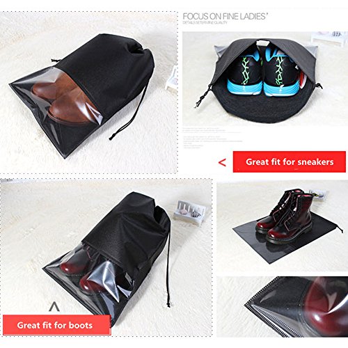 Features: -Dust-proof, lightweight and breathable Drawstring design -Clear view window Dimension:12.6 x 17.3 Inch Package including: 4 * Black Made of high quality non-woven fabric with cute drawing,dust-proof,easy Organizer,Durable use. X-Large sizes: (12.6"W x 17.3"H), Large enough for shoes between Size 10 to Size 14. Like Basketball Shoes, Golf Shoes, etc. It is a great gift for you to save spaces, and keep your dirty shoes separately from your clean clothes when travel or store. And suitable for women and men shoes. 0