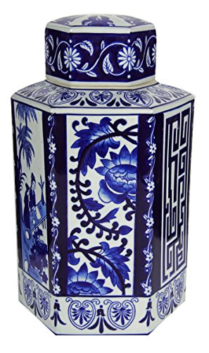 A&B Home Lidded Jar, 9 by 8.5 by 16-Inch, Blue/White