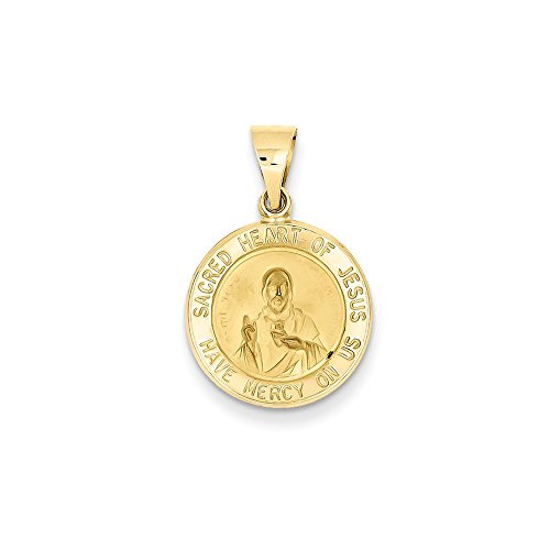 14k Polished and Satin Sacred Heart of Jesus Medal Pendant. Material: Primary - Purity:14K|Length of Item:18 mm|Feature:Hollow|Manufacturing Process:Die Struck|Material: Primary:Gold|Width of Item:15 mm|Product Type:Jewelry|Jewelry Type:Pendants & Charms|Bail Width:4 mm|Material: Primary - Color:Yellow|Bail Length:6 mmFeature