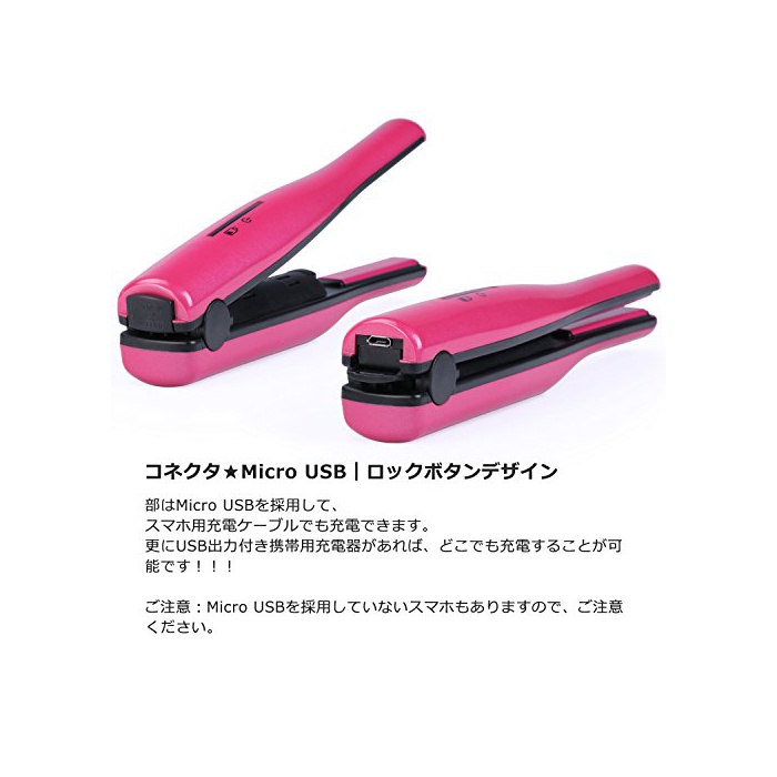 【전지식&USB충전식 헤어아이런(고데기)】※해외 사용 가능해서,여행이나 유학,출장으로도 좋다.전지:국제LCR18650 형리튬 이온 전지(3.7V-2200mAh)※USB충전식:충전 시간 약3시간,가동 시간 약45분.☆주의:충전 중으로 헤어아이런(고데기)를 사용하는 것은 금지.