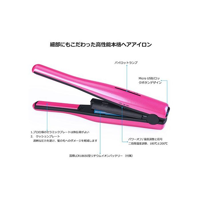 원본상품명: OMASI ヘアアイロン ストレトアイロン コドレスヘアアイロン 海外 持ち運び便利 耐熱手袋付き 電池式 度調節可能 (ピンク)