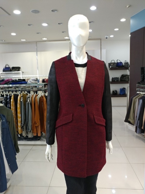 소매 스웨이드배색 멜란지 노카라자켓