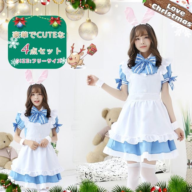 クリスマス コスプレ レディース メイド服 アリス風 かわいい コスチューム 衣装 仮装 変装 大人 メイド 服 セクシー ブルー セットアップ パーティーグッズ イベント用品 余興 xmas Christmas cos 女性用