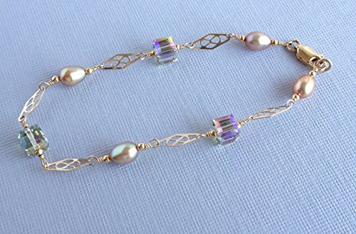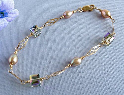 -. Title : 14k Gold Filled, Swarovski Crystal and Gold Freshwater Pearl Bracelet