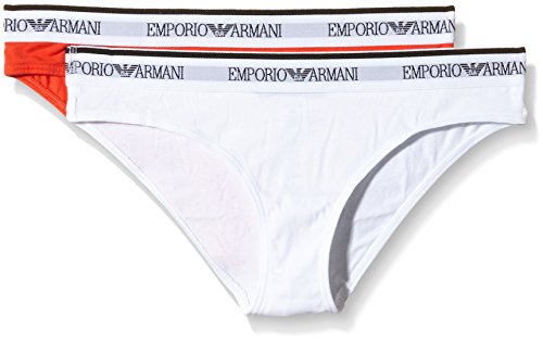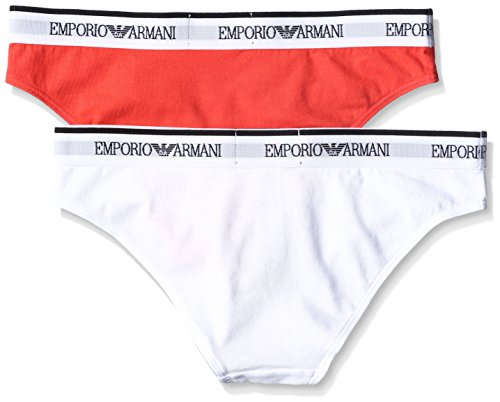 Emporio Armani Women's Visibility Stretch Cotton Brief, 2-Pack, Poppy/White, X-Small