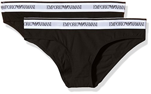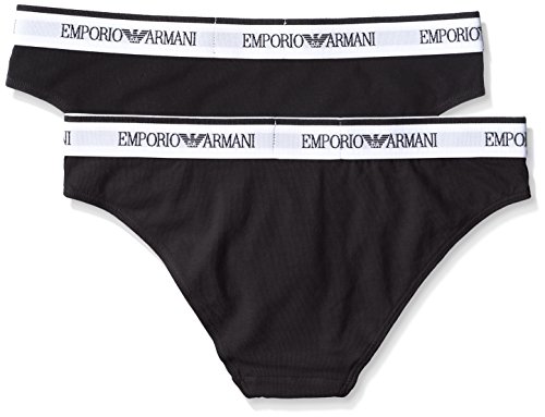 Emporio Armani Women's Visibility Stretch Cotton Brief, 2-Pack, Black, Large