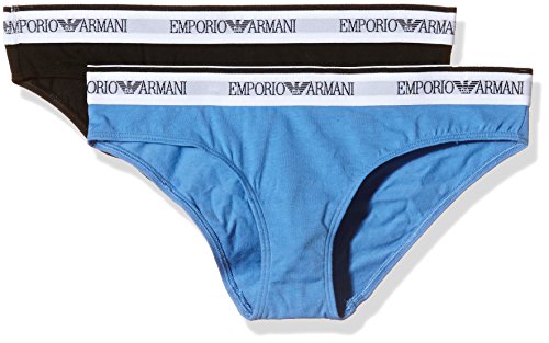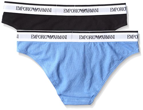Emporio Armani Women's Visibility Stretch Cotton Brief, 2-Pack, Sky Blue/Black, X-Small