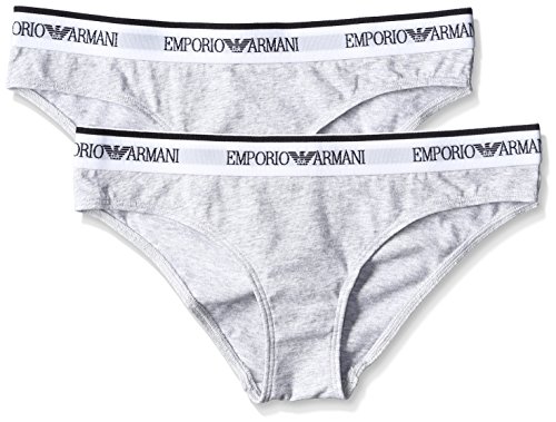 Emporio Armani Women's Visibility Stretch Cotton Brief, 2-Pack, Grey Melange, Medium
