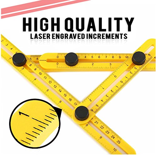- ✔️DURABLE: Made of fiberglass-filled nylon with laser-engraved increments, your Multi Angle Ruler will stand up to years of hard wear (even at rugged construction sites).