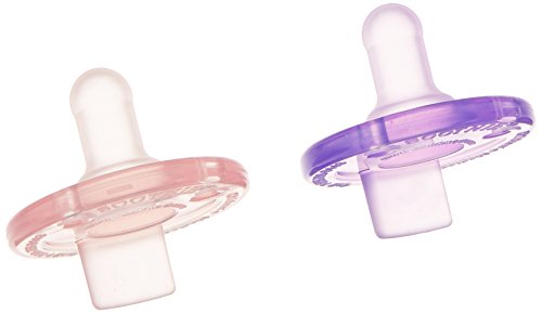 -. Feature : Suitable for infants 0+ months / Sized and shaped for baby's mouth / Hospital-grade silicone, Latex-free / Durable, one-piece construction / Set contains two (2) pink soothies and two (2) purple soothies