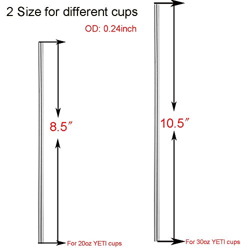 - Length:8.5/10.5 inch, OD:0.24 inch, straight, same as normal disposable straws. Fits 30oz YETI cups.