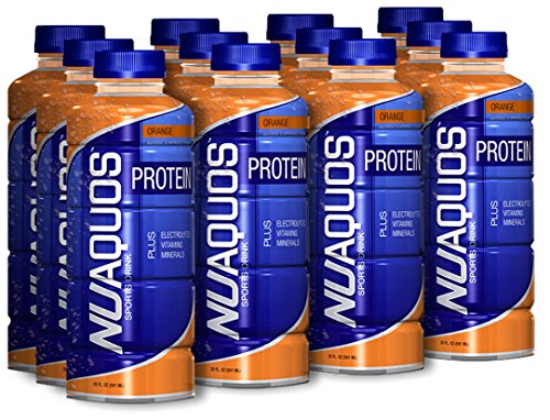 NuAquos Electrolyte Sports Drink with Protein, Orange, 20 Ounce (12 Count)