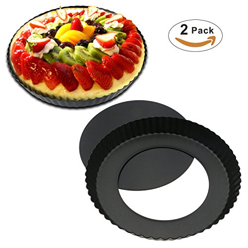 TedGem 2 Pack Non-Stick 8.8 Inches Removable Loose Bottom Quiche Tart Pan TedGem commercial grade, non-Stick surface allows for effortless release of pastries from this 8.8 inch quiche pan, ensuring your baking creations stay intact. No more worrying about cracked crusts or broken bottoms! Stately Kitchen's 8.8 inch non-stick quiche pan features a removable bottom, and fluted edges that will make serving a dream and the cleaning up of your favorite french pastry, easy! * About the product - Designed specifically, our exclusive premium non-stick coating which provides quick, easy release of baked goods. - 8.8 inches large quiche pan with removable bottom for easy access means fruit tarts or desserts come out intact. - The fluted sides increase the surface area, which in turn creates a strong crust capable of holding and containing the heavy ingredients of a quiche or a fruit tart. - Perfect results pans feel noticeably heavier than most comparable brands, assuring that they will heat evenly for years of baking perfection. - Easy clean-up and dishwasher safe. * Include Set of 2, 8.8 inches non-stick tart pie pan. About TedGem TedGem offers world class customer service. High quality guarantee, 100 % satisfaction or just get your money back. Totally no risk free on our side. If you are not completely satisfied with your purchase, we will do whatever it takes to make sure you are happy! Your satisfaction is our first goal! 0