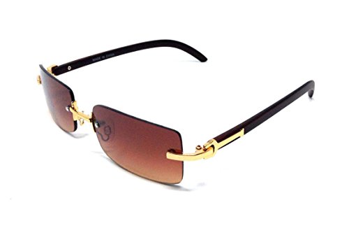 Product DescriptionThe Premier Metal Wood Print Rimless Frame Slim Rectangular Aviator Sunglasses.0