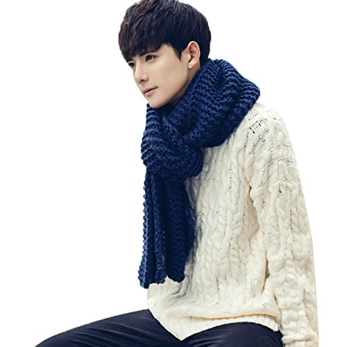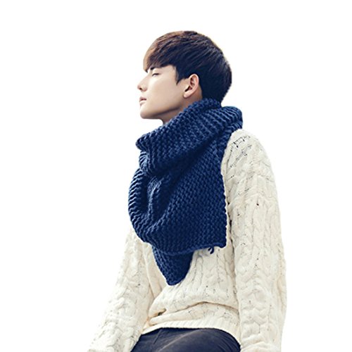 (ZEHAT)/Accessories/Cold Weather Accessories/DIRECT FROM USA/Pure Blue Thick Knit Wool Yarn Winter Infinity Circle Loop Scarf Lovers Scarf Korean Scarf Men ...