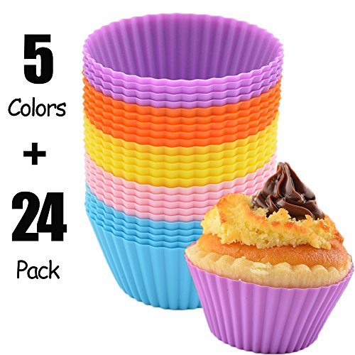 VAPSINT Lovely Non-Stick Heat Resistant Reusable Silicone Cup Cake Liners 24 Pack Baking Cups,Multi Six Color Muffin Cups