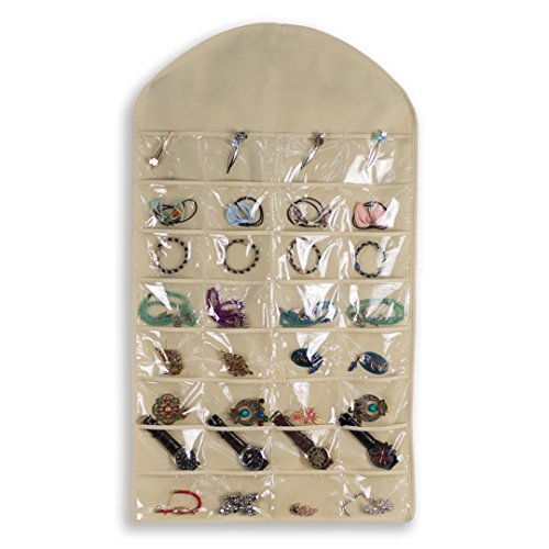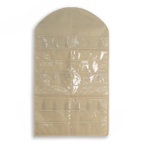 Hanging Jewelry Organizers-Realdios 32 Pockets 18 Hook and Loops Non-Woven Dual Sides Wall Hanging Closet Accessory Jewelry Holder Organizer Folding Travel Storage Bag(32pocket-Creamy-White)