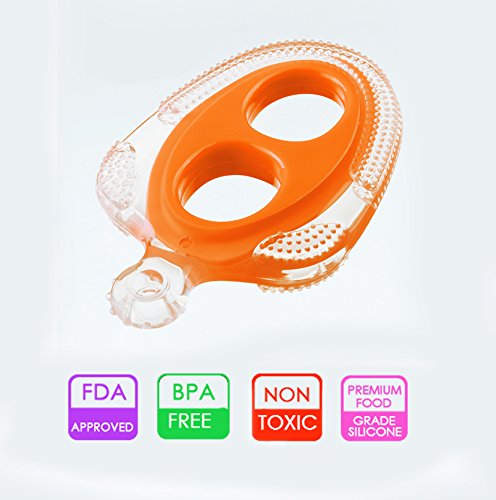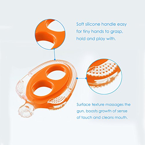 ✿Uneven Design✿---The surface texture massages the gum, boosts growth of sense of touch and cleans baby’s mouth. The silicone materials is soft and comfortable, which helps baby go through the teething. Chill it, the effect will be better.
