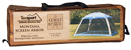 Product Description The Texsport® Montana screen arbor gives you shelter from the sun and protection from flying insects, thanks to "no-see-um" mesh walls and a roof supported by fiberglass poles. It has 2 zippered entrances and comes with a carry/storage bag.