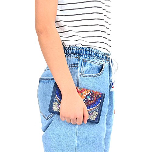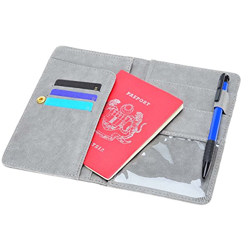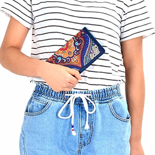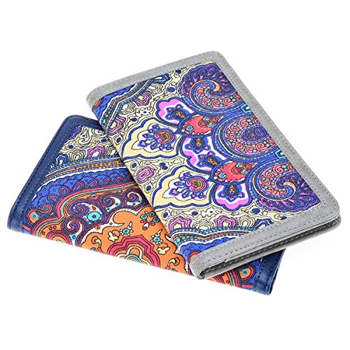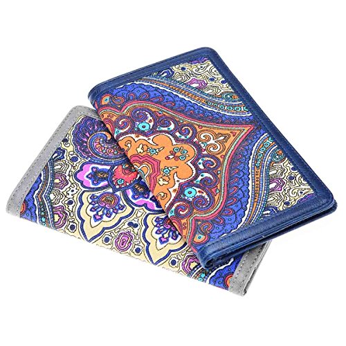 Product Description Passport Holder Wallet Highlights - 7.1 x 8.6 x 0.1in, compact still allow much room for extras like Cash, Business Cards, Credit Cards, Boarding Passes, Airline Ticket, Check, Receipts, Small Notepad; - Fashionable exotic artwork canvas and leather texture, sturdy and stylish, pick up you in crowned airport by this; - Embedded hidden button closure, smooth and strong; - Suit for most USA and International passports in dedicated passport pocket area; - Additional pen holder make you always ready for the customs forms, relive you from the anxiety of search for pens everywhere.