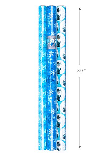Studio : Hallmark Publisher : Hallmark Binding : Kitchen Product Description Designed with blue wintery scenes and colorful patterns, this high-quality reversible wrapping paper is perfect for beautiful and varied gift presentations. Each roll in this reversible holiday wrapping paper bundle measures 30 inches wide by 192 inches long for a total of 40 square feet per roll. The perfect way to wrap all your gifts in style, purchase includes three rolls of reversible wrapping paper with two different designs per roll. Created with high-quality paper materials, all Hallmark gift wrap is made with paper from well-managed forests. 0