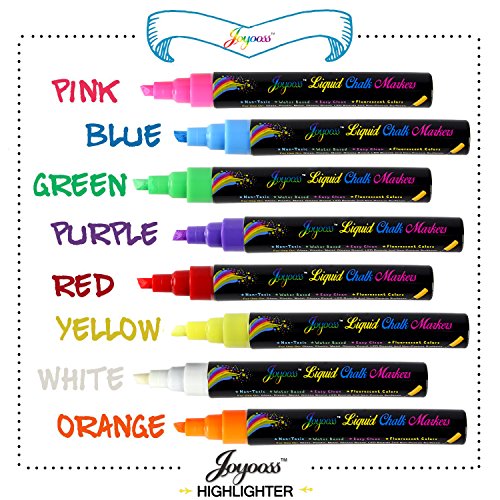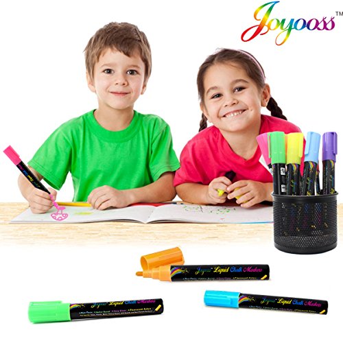 Joyooss 8pcs 6mm Liquid Chalk Markers, Highlighter Fluorescent Pen for LED Writing Board - Non-Toxic, Safe & Easy to Use, Neon, Great for All Ages