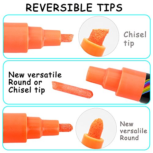- 【Vibrant Neon Colors】 --- Bright chalk marker Pens use a high-quality, super-concentrated liquid chalk that provides bright, vibrant colors each and every time. These eye-catching colors give you the ultimate in creative expression! Great for restaurant menu boards, bistro boards, LED writing board, Car Windows, Kids art and more.