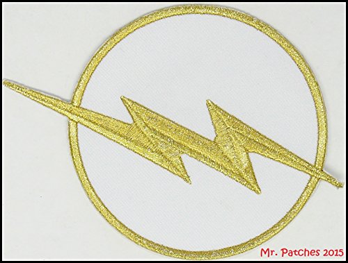 THE FLASH White & Gold Chest Emblem RED Halloween TV Show DC Comics Costume Jacket Shirt Hat Cap Embroidered Patch Easy Iron On .