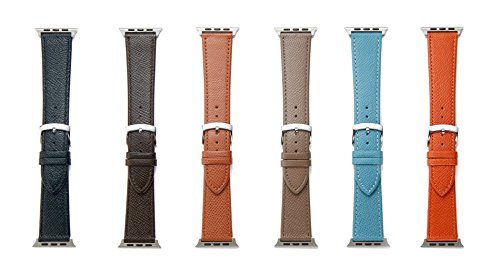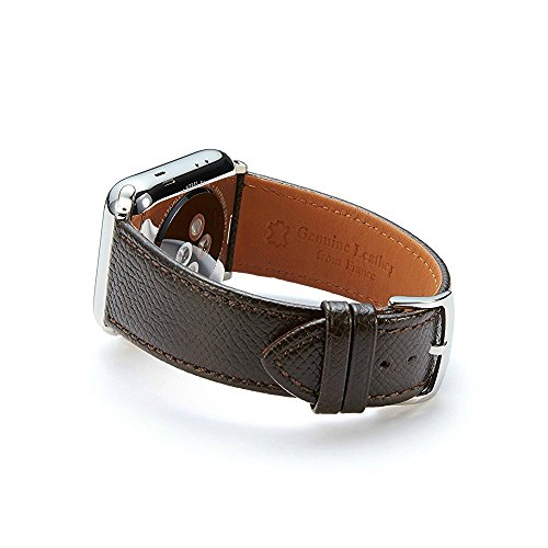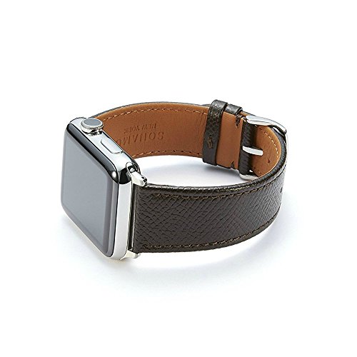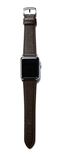 Apple Watch Band, French Epsom Premium Leather Strap with Stainless Steel Clasp for 42mm Apple Watch Models (by SONAMU New York) (Dark Brown)