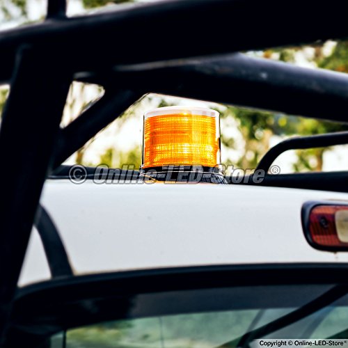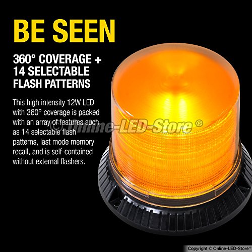 OLS Emergency Strobe LED Beacon Light [12 Watt] [14 Modes] [Powerful Magnet] [Dust Cover] [13ft Cord] Warning Flashing Emergency Vehicle Lights for Cars and Trucks - Amber / Amber