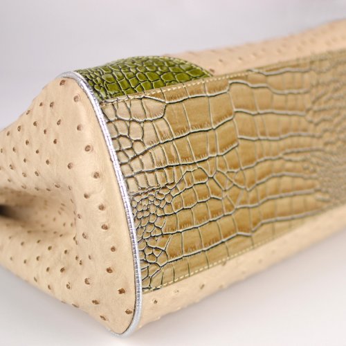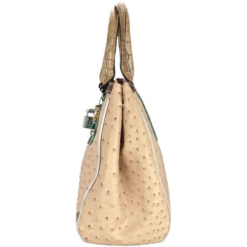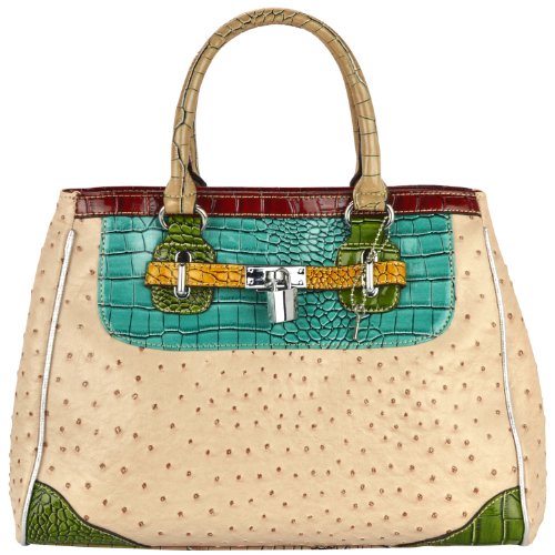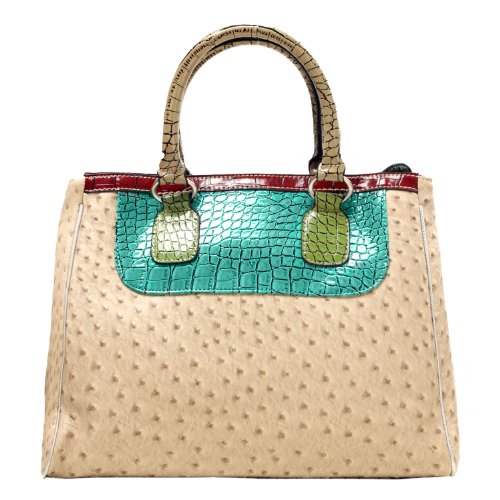 - Title : MG Collection Kaede Beige Ostrich Embossed W Faux Crocodile Accents Shoulder Bag, Beige, One Size