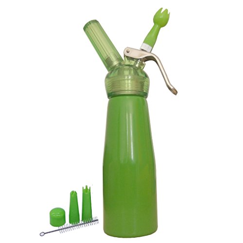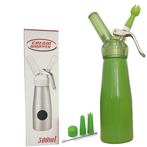 Professional N2O Aluminum Whipped Cream Dispenser with Nozzles and Cleaning Brush (500ml, Green)