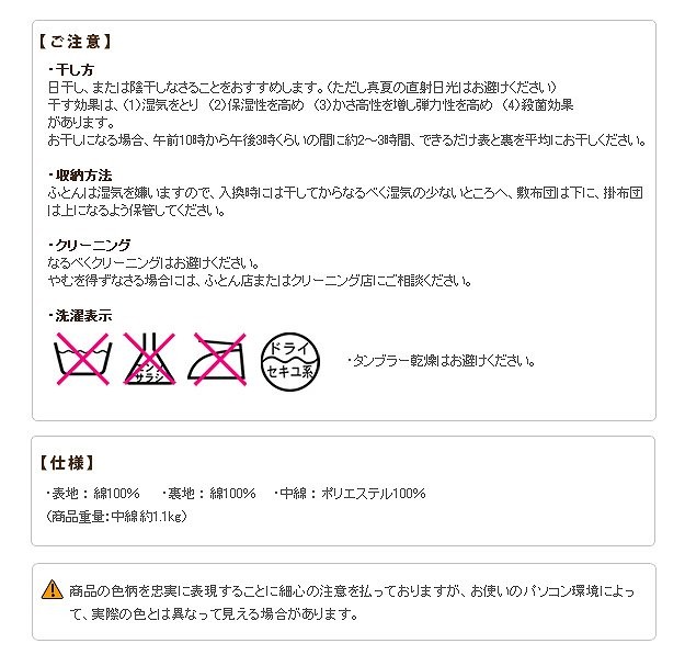 サイズ(cm):幅68x長さ120cm、中綿量約1.1kg