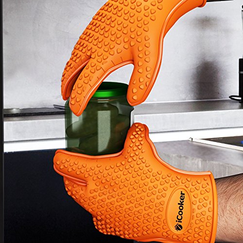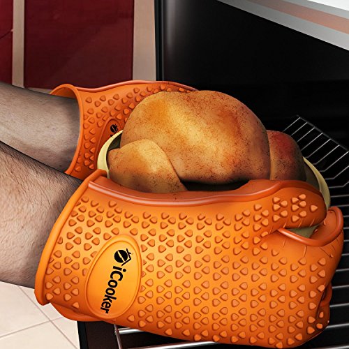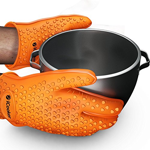 - Feature : ✔ MULTI-USE - designed to serve you all around. From lifting hot pots from the cooker, removing hot food from the grill, and opening tight jars, this pair makes your kitchen time smooth. / ✔ ONE SIZE FITS ALL - fitted with the iCooker 10 Finger No-Slip technology that increases effectiveness. Ideal for both men and women. Comfortably fits everyone, no need being choosy on the size. / ✔ SAFETY IS PROACTIVE - the iCooker mantle says that 'safety is proactive'. With this product, you get a proved, industry-leading way to be safe with your everyday cooking, baking and BBQing tasks. / ✔ TOUGH, TEMPERATURE RESISTENT MATERIAL - made from super-tough, highly resistant silicone that's designed to withstand temperatures as high as 425 degrees Fahrenheit. / ✔ WATERPROOF, DISHWASHER SAFE - made with your ease of use in mind, the iCooker pair of cooking gloves is waterproof and dishwasher safe. This way, it works better - more use, and less hassle.