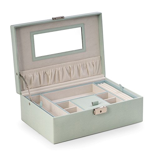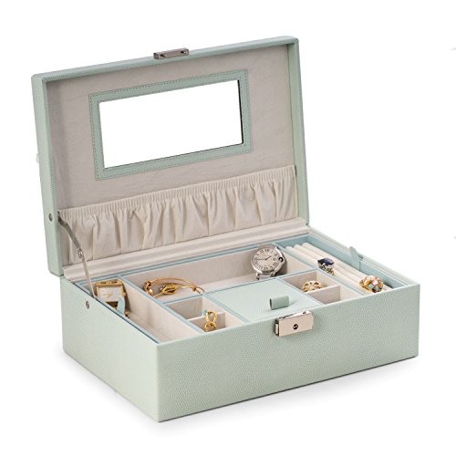 Time Factory AJ-BB693BLU "Lizard" Debossed Leather Jewelry Box, Aqua Blue