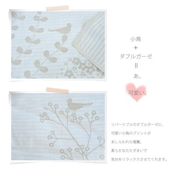 柔らかな佇まいが素敵なリバーシブルのダブルガーゼのれん。程よい透け感と小鳥のプリントが特徴です。