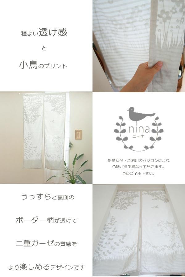 小鳥のプリントがかわいいダブルガーゼ素材ののれん。