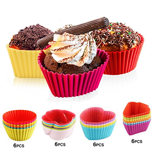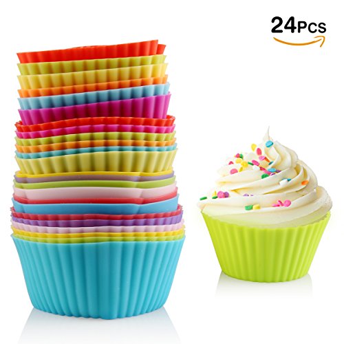 Silicone Maffin Cupcake Baking Cups/Liners, 24 Pack Reusable Non-Stick Cake Mold for Decorating Wedding/Birthday Cupcake, Dishwasher & Microwave Safe