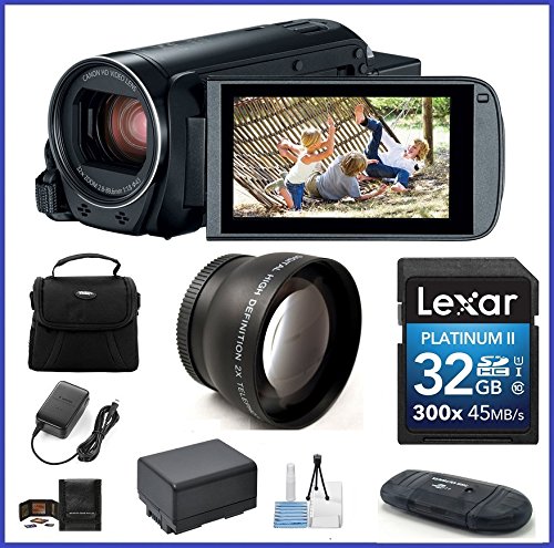 Canon VIXIA HF R800 Full HD Camcorder Bundle, includes: 32GB SDHC Memory Card, Telephoto Lens, Extra Battery and more...
