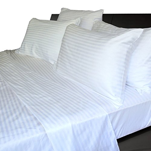 Essina Color Palette Collection, 100% Cotton 680 thread count Dobby Stripe 4 piece Bed Sheet Set, Deep Pocket, Queen, White